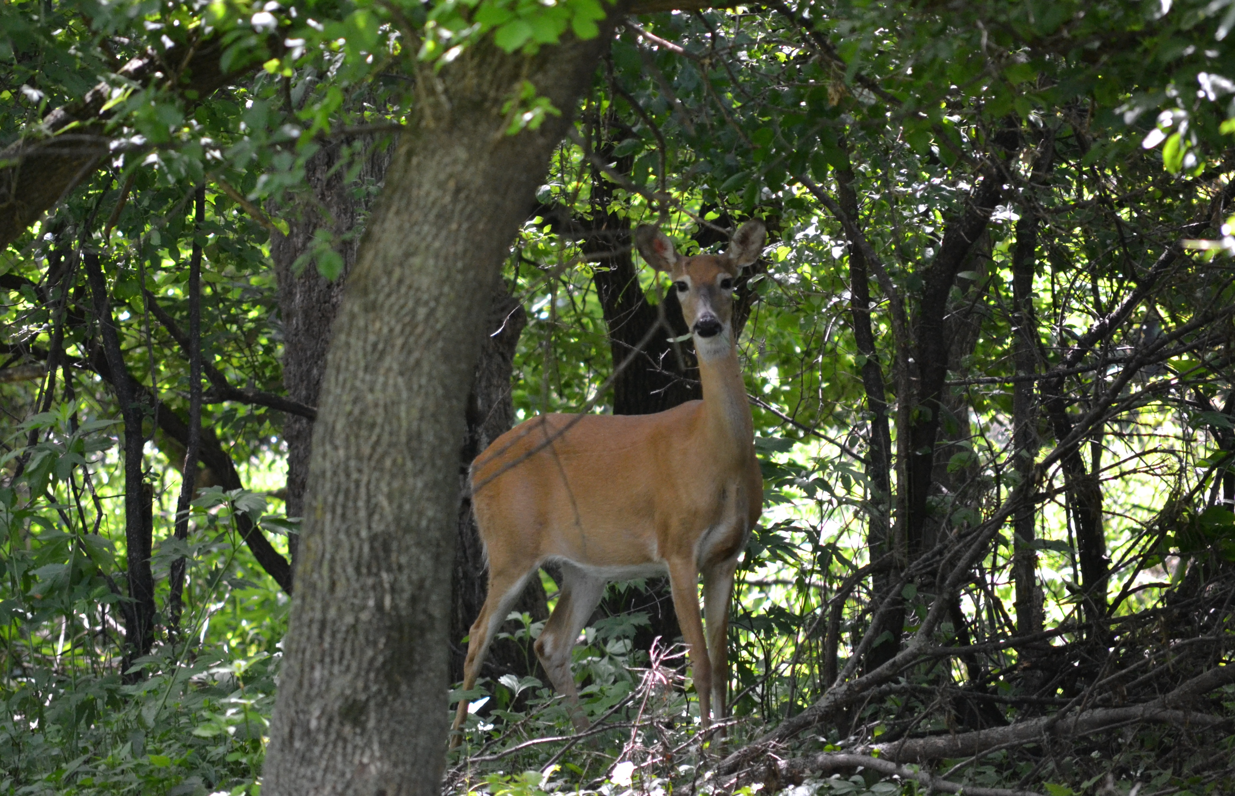 I opened my eyes and soaked in the variety of shades of green and brown throughout the trees and grasses, splashes of other colors mixed in by other plants or flowers. God’s paintbrush. Then I stopped and held my breath. A deer was only a few feet from me in the trees, a rare sight on my walks. Majestically displaying God’s tender loving care.