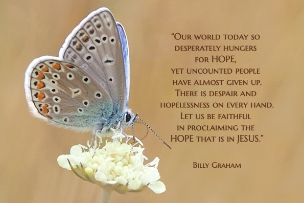 • That’s what I thought, too, Linda. It’s amazing how Billy Graham’s words ring truer than ever, even after he’s passed away. There are many who are desperately hungering for hope more than ever today. May God give us grace to honor Christ in our words and actions!