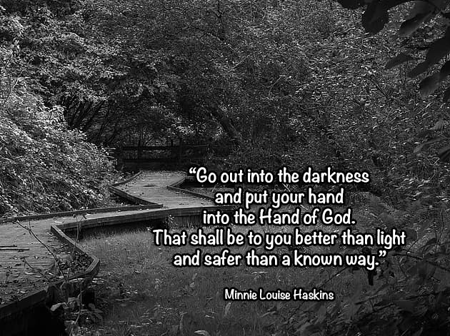 Dear Trudy, I love the reminder to put our hand into the hand of God because it will act as a light for us, pushing back the fearful darkness. The world seems to be in a permanent state of worry these days, and anxiety is rampant as dark and darker still events unfold. It’s so hard to not fear, isn’t it? And yet God’s Word tells us to trust God when we feel afraid, and trust His character and grace above our feelings and pain. Oh may we all be given the means to raise our eyes above every calamity and seek the face of Christ instead of dwelling so much on what has gone wrong as we witness the chaos and storms. Thank you for this timely and encouraging post. It’s a lightning ray (bolt?) of hope to help us move forward. Blessings, love and hugs. xo ❤️
