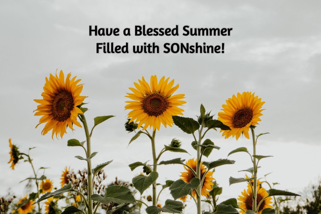 I probably will not be returning to blogging for the rest of this summer. I’m not certain when, but know you will remain in my heart and prayers. I pray God will fill your hearts with the SONshine of His love this summer and always!