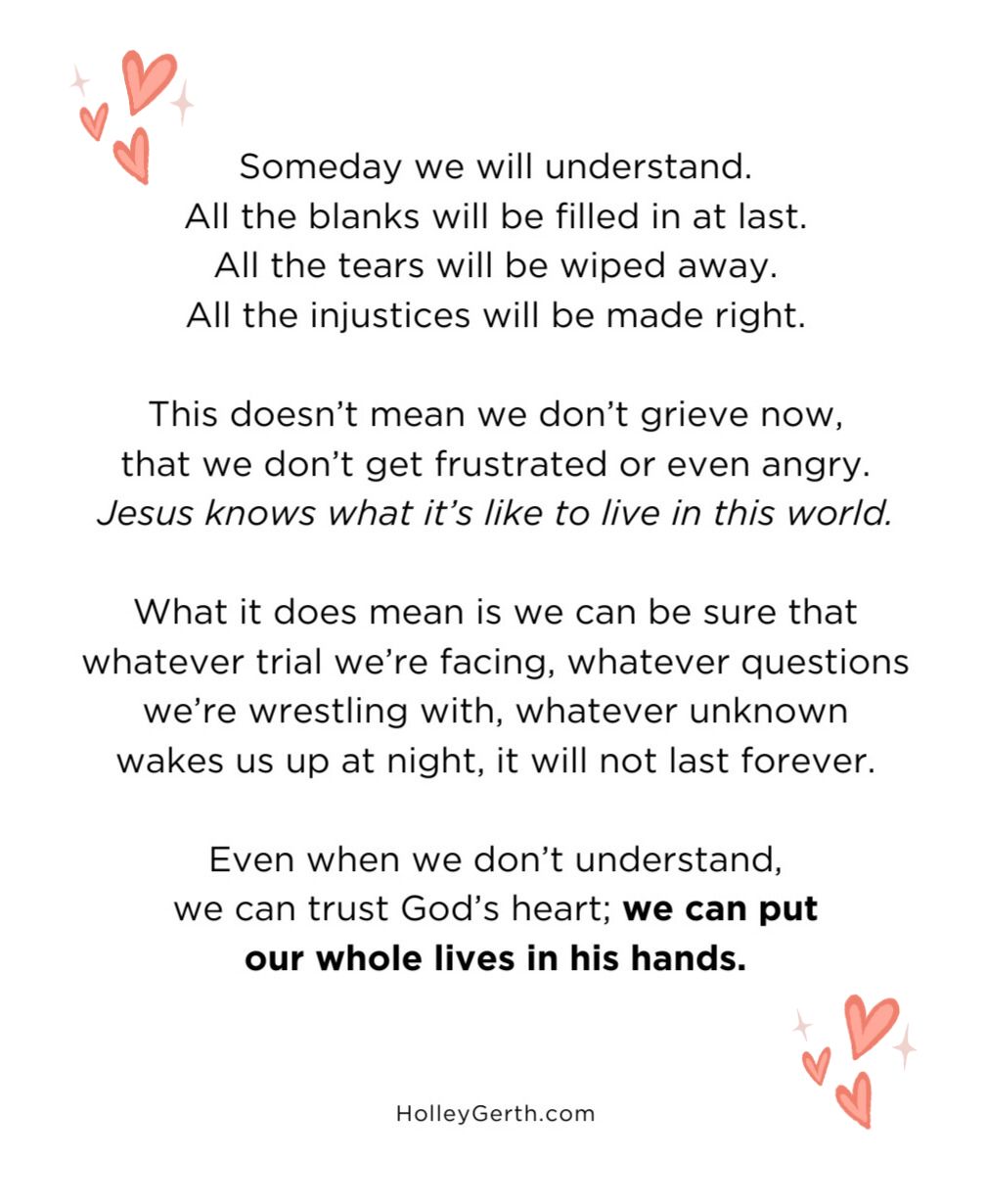 I pray that the Lord lets you see just even a glimpse of the fruit that comes from your trusting heart. May He bless you this summer and bring great refreshing to you. Love and prayers, dear friend! ❤️